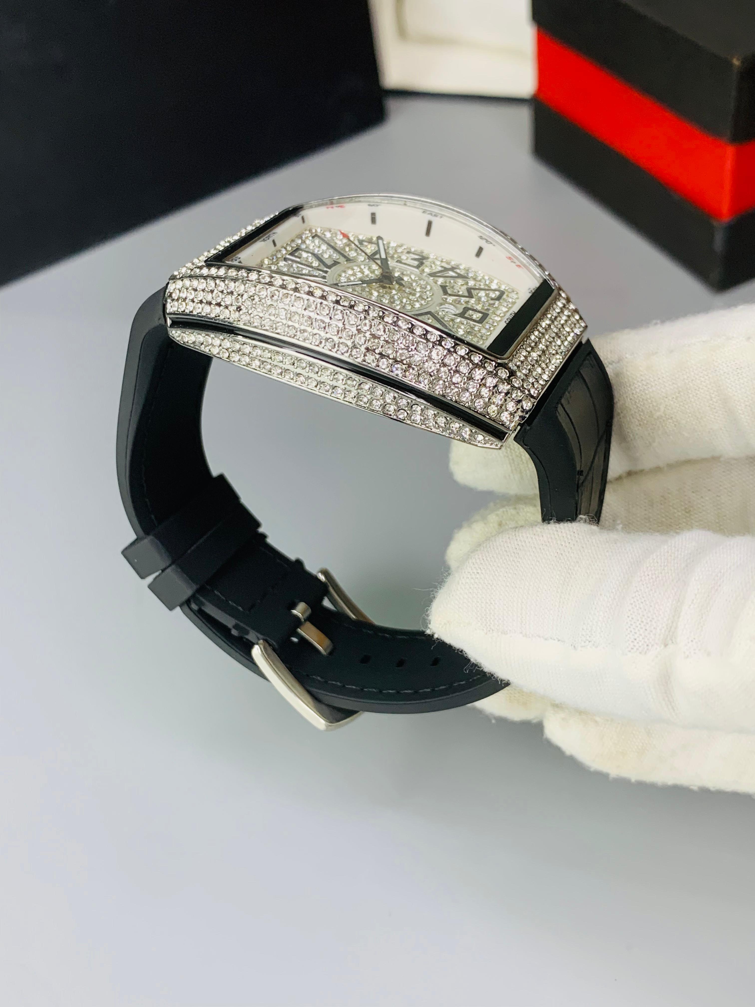 The dazzling diamond-studded bezel enhances the elegance of the sleek black dial, while the unique compass-style face design gives it a distinctive, adventurous edge. Whether you’re dressing up for an occasion or elevating your everyday look, this timepiece defines sophistication.